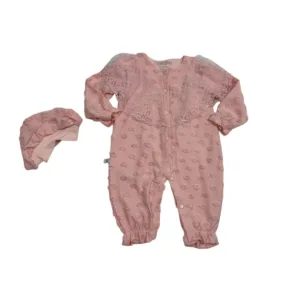 Εντυπωσιάστε με αυτή τη μοναδική ολόσωμη φόρμα, ιδανική για τις ιδιαίτερες στιγμές του μωρού σας. Διακοσμημένη με διακριτικό λουλουδάτο μοτίβο, κουμπιά στο μπροστινό μέρος και κομψές λεπτομέρειες από δαντέλα στον γιακά, τα μανίκια και τα τελειώματα. Κατασκευασμένη από υψηλής ποιότητας, μαλακό βαμβακερό ύφασμα για άνεση και στυλ. Ένα ρομαντικό κομμάτι που θα λατρέψετε! Ιδανική επιλογή…