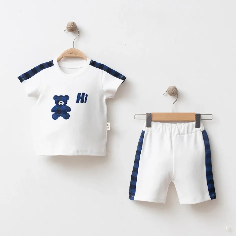 Βρεφικό Σετ με Αρκουδάκι “Hi” – Μπλούζα & Σορτσάκι για Αγόρι