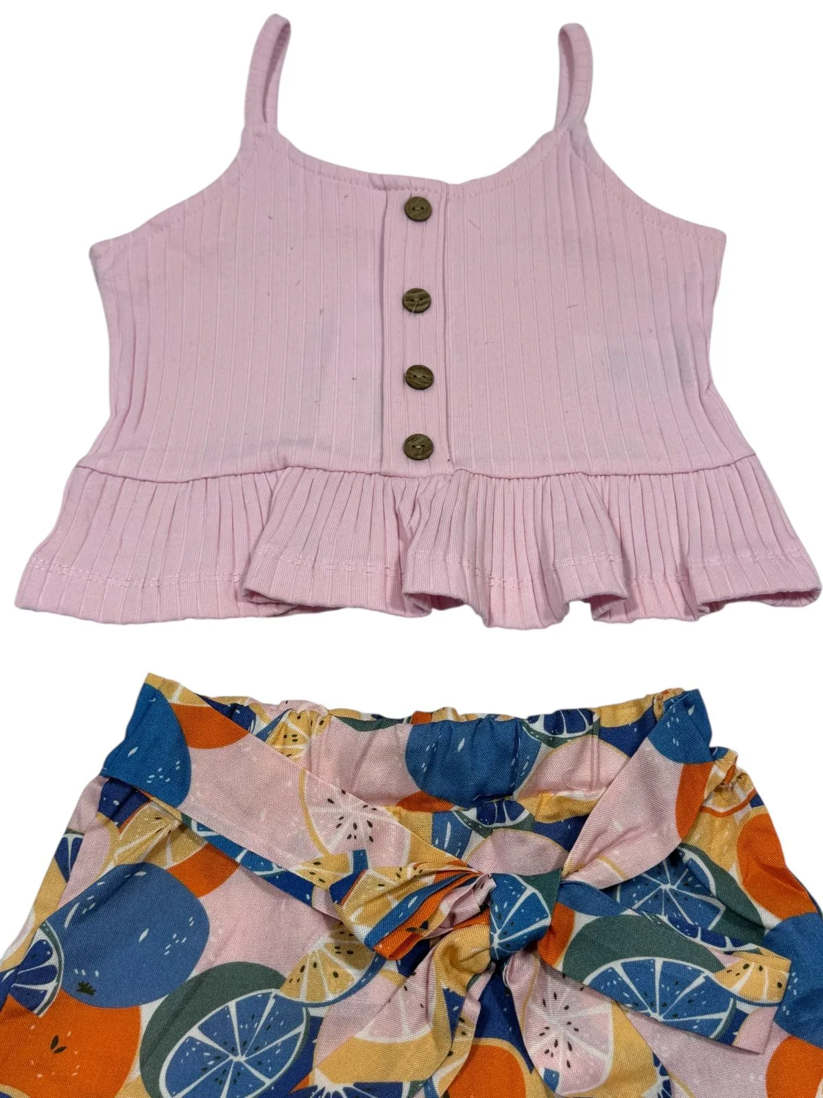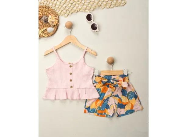 Καλοκαιρινό Σετ Παιδικό: Ροζ Rib Top & Σορτς με Φρουτένιο Σχέδιο για 2-5 Ετώ
