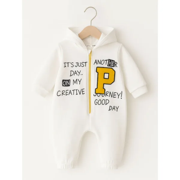 Μωρό αγόρι ολόσωμη φόρμα κεντημένη με φερμουάρ λευκό