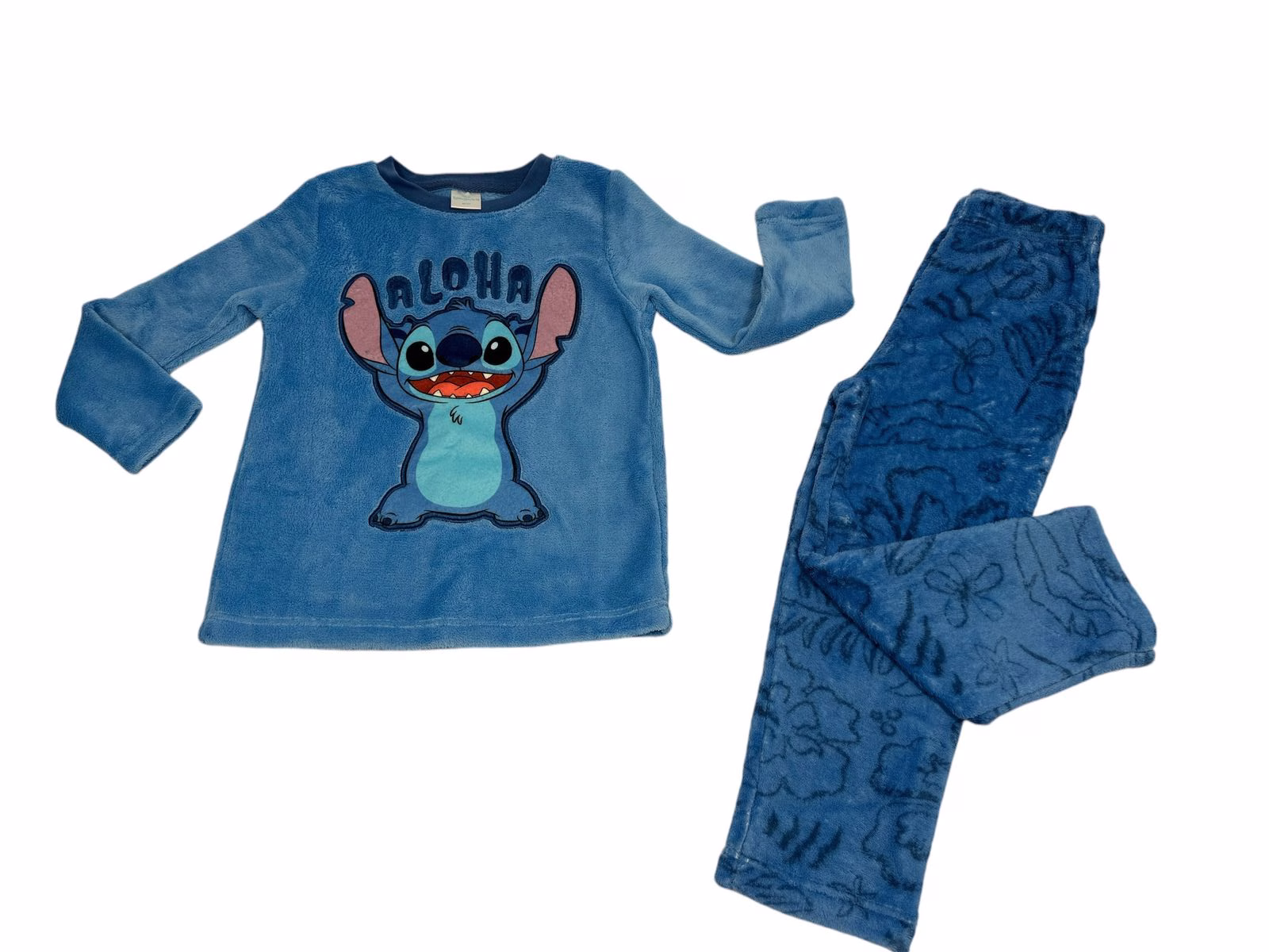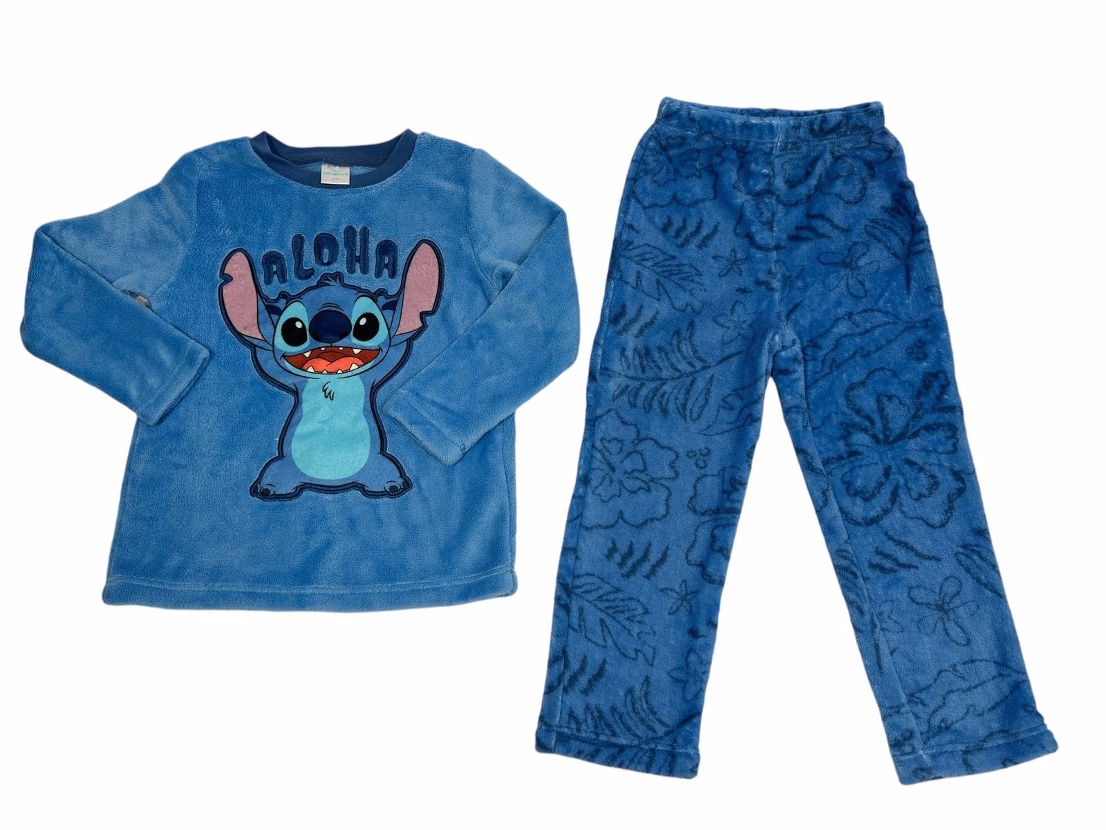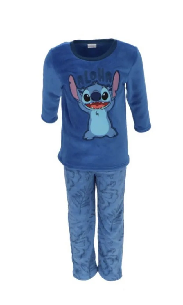 Ζήστε τη μαγεία της Disney με αυτό το υπέροχο παιδικό fleece σετ πιτζάμας “Aloha” με τον αγαπημένο σας Stitch! Η μπλε μακρυμάνικη μπλούζα διαθέτει τον αξιαγάπητο χαρακτήρα Stitch με το χαρούμενο μήνυμα “Aloha”, φέρνοντας μια αίσθηση χαλάρωσης και περιπέτειας από τη Χαβάη. Το σετ περιλαμβάνει επίσης άνετο παντελόνι με μοτίβο Stitch, εξασφαλίζοντας ζεστασιά και στυλ στις κρύες νύχτες. Ιδανικό για τα παιδιά που λατρεύουν τη Disney και θέλουν να κοιμούνται με άνεση και χαρά!