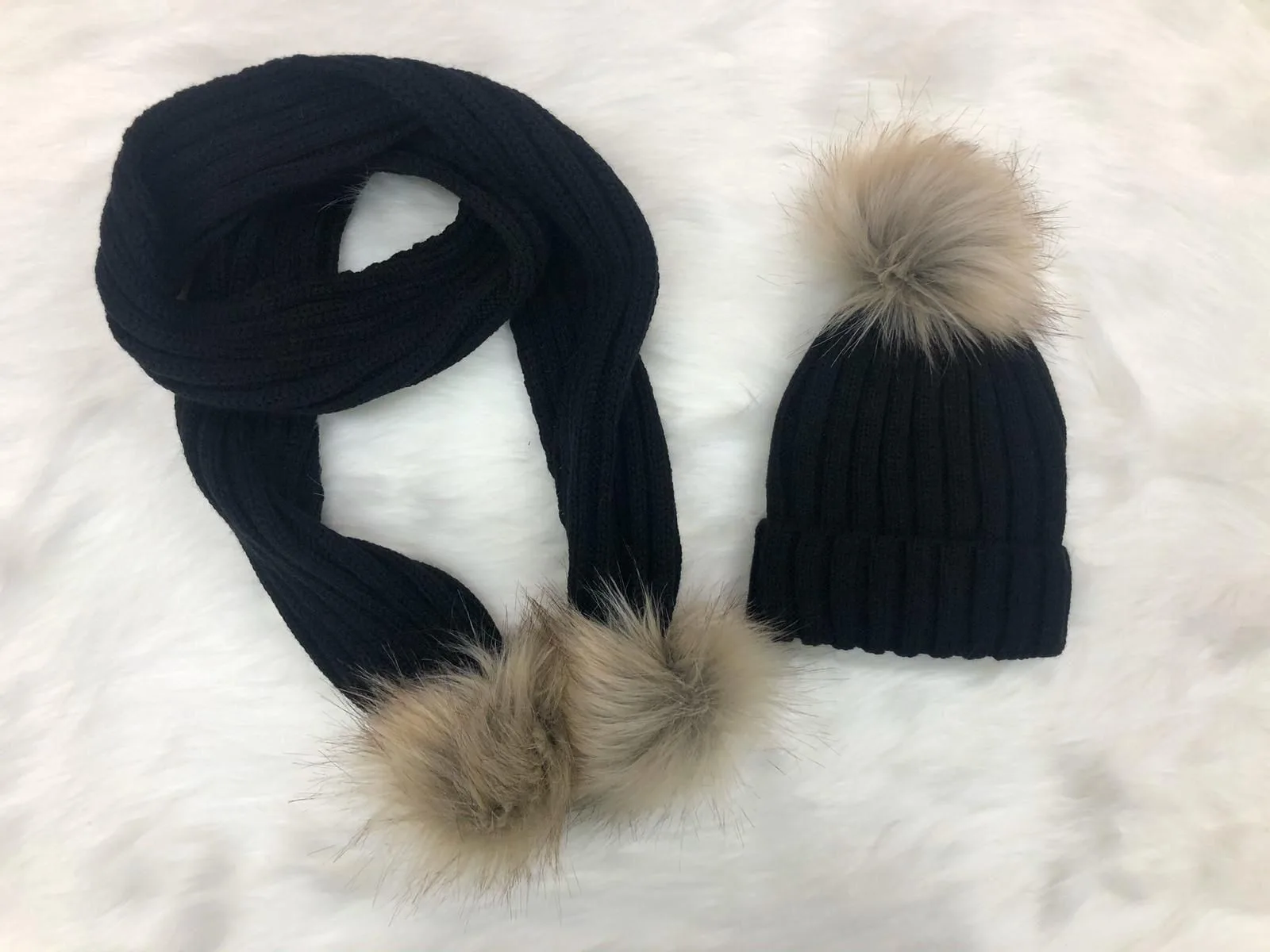 Σετ Παιδικό Πλεκτό Σκουφάκι & Κασκόλ με Γούνινα Pom-Poms (MA)