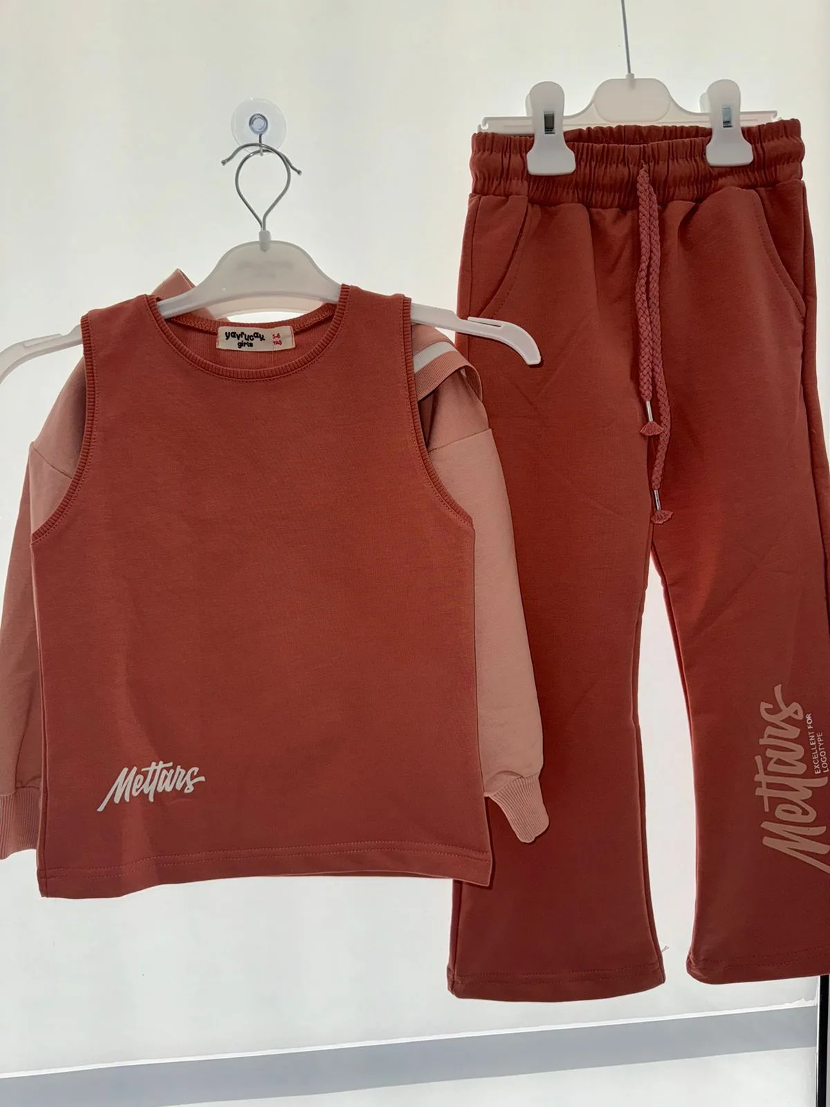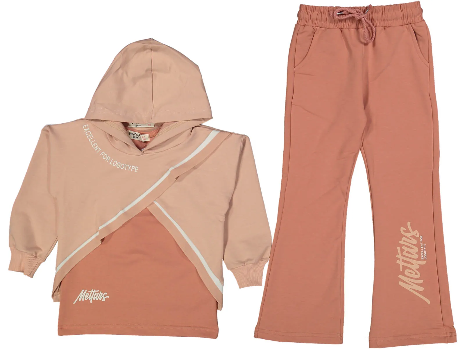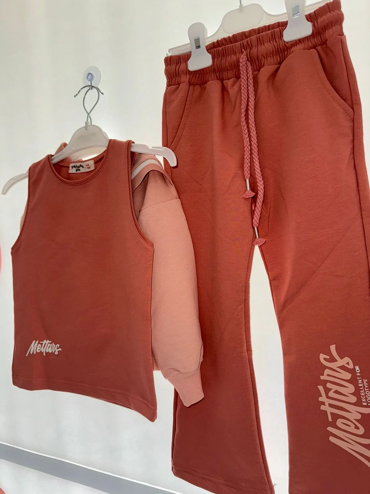 Το σετ περιλαμβάνει ένα αμάνικο μπλουζάκι, ένα φούτερ με κουκούλα και μακριά μανίκια, και άνετο παντελόνι φόρμας με ελαστική μέση για τέλεια εφαρμογή. Οι εντυπωσιακές λεπτομέρειες με το λογότυπο “Mettars” και το χαριτωμένο σχέδιο με τον ροζ φιόγκο προσθέτουν μια μοντέρνα πινελιά στο σύνολο. Ιδανικό για καθημερινή χρήση στο σχολείο, στο παιχνίδι ή στις εξόδους, αυτό το σετ συνδυάζει στυλ και πρακτικότητα, καθιστώντας το απαραίτητο κομμάτι για κάθε κορίτσι.